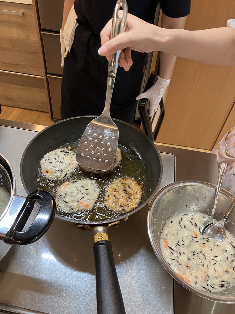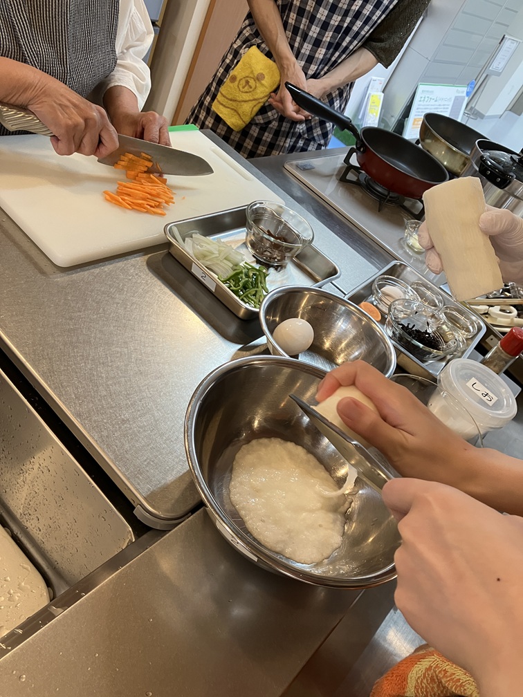 とろろの具材と調味料も混ぜ、落とし揚げにしました。