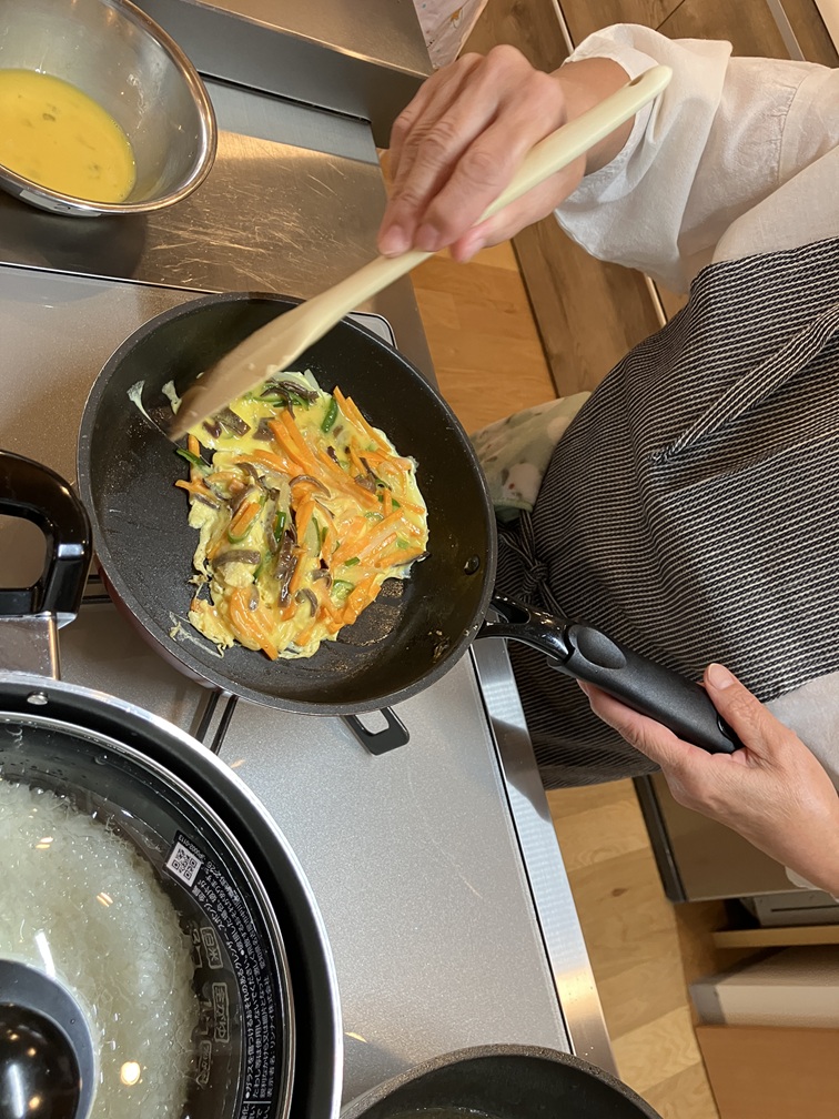 更紗焼きの鮭にのせる具材を炒めました。
