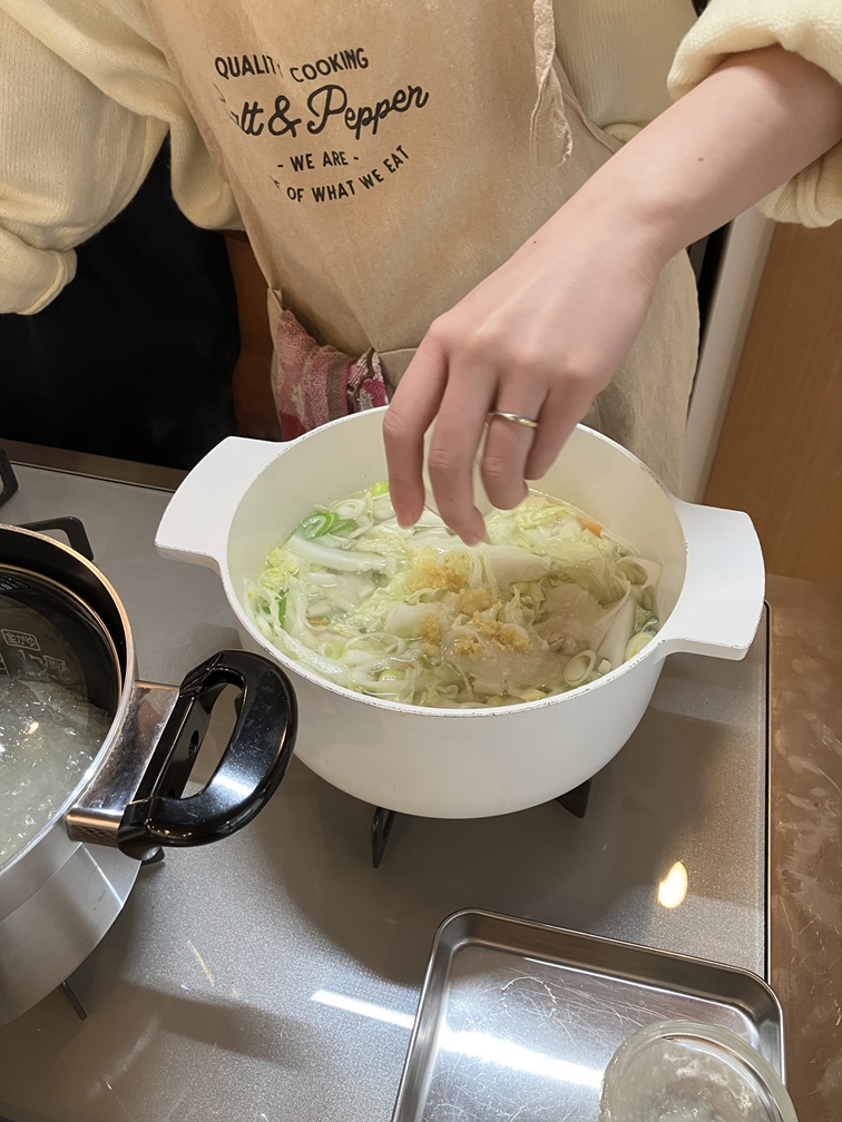 煮込んでいる間に塩麹に漬け込んだ鶏の手羽元を野菜と一緒に煮込み、スープを作りました。