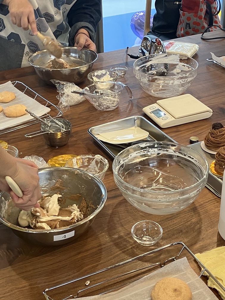 マロンクリームは硬めに作るので絞るのに大変そうでした。
