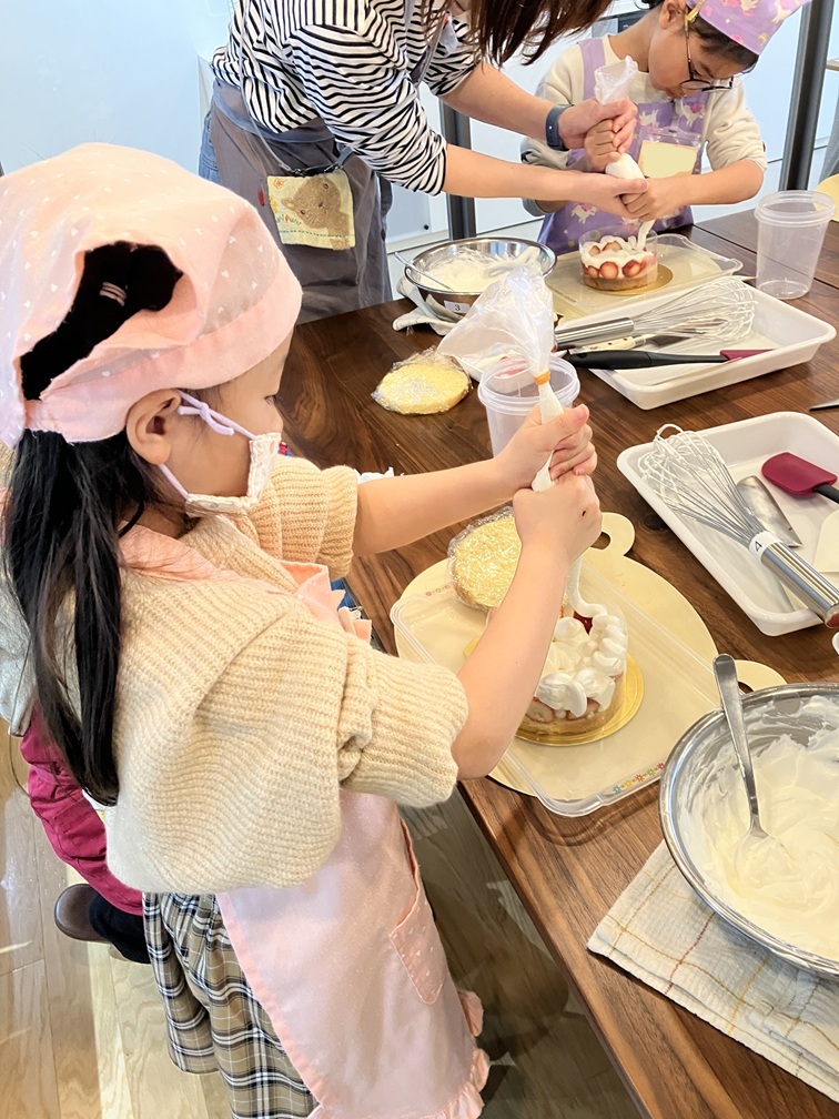 12月といえばクリスマス!今回は親子でクリスマスケーキをトッピングしました。