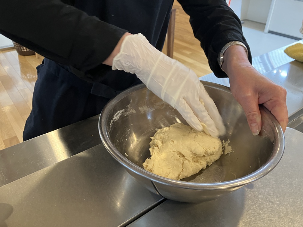 初めにホットケーキミックスに油と水を入れて、生地を作りました。